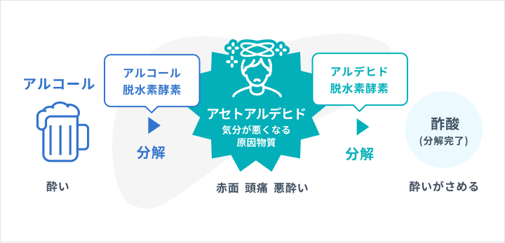 飲酒による顔の赤みを抑え、のぼせやほてり、胃の不快感も和らげます。