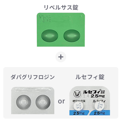 - リベルサス錠に加え、海外製ダパグリフロジン(5mg)かルセフィ錠(2.5mg)のどちらか1つを選べます。