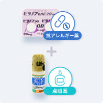 抗アレルギー薬とつらい局所症状(鼻詰まりや目のかゆみ)に応じたセットです。